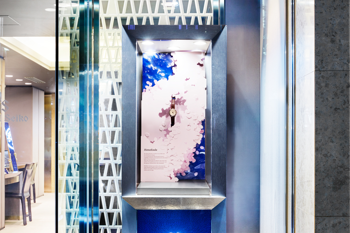 Grand Seiko boutiques are now displaying windows themed on “hanaikada.”